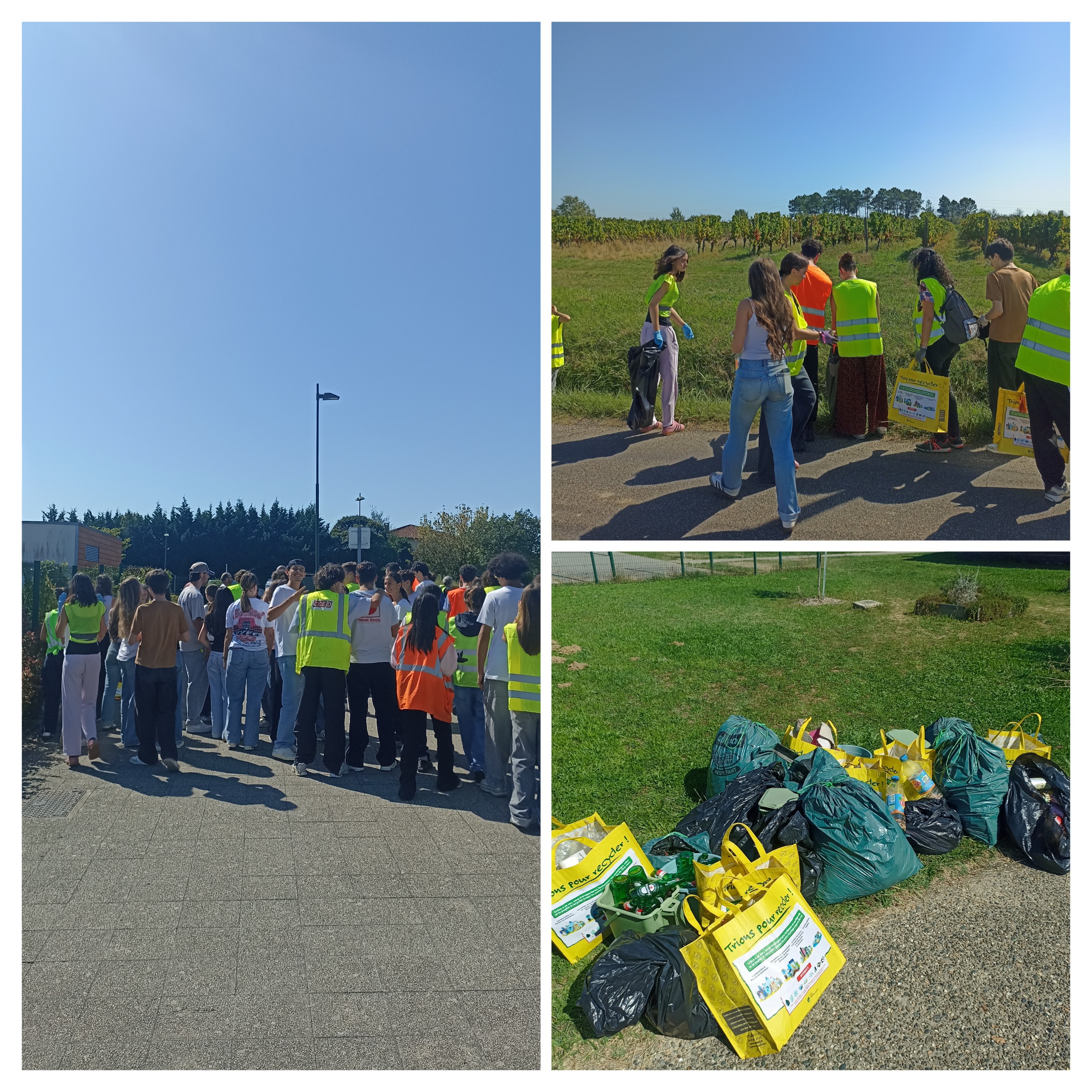 Sous un soleil de plomb , les élèves ont été très efficaces et ont ramassé plusieurs kilos de déchets qui ont été collectés par la Mairie de Fronton.